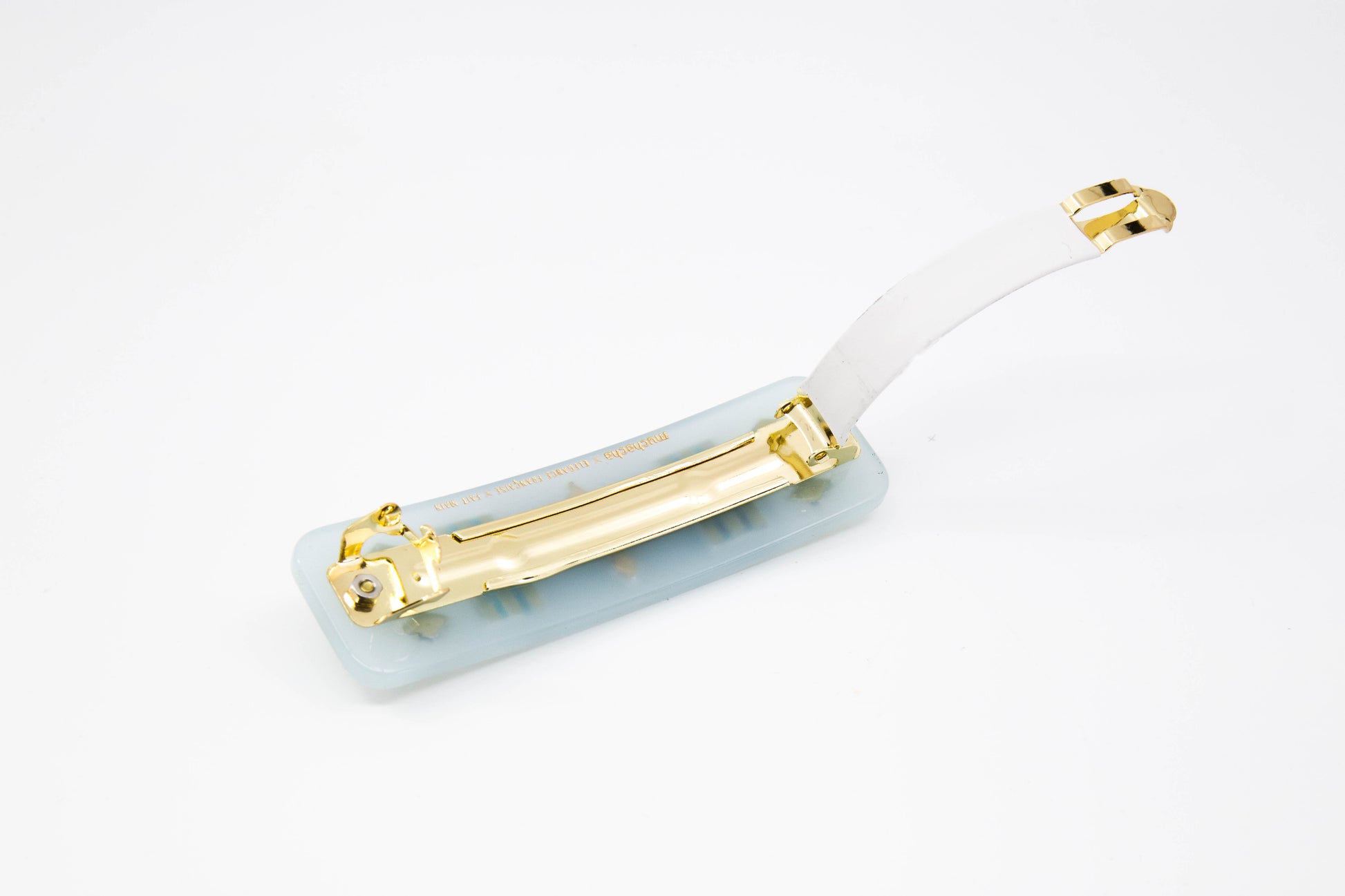 Si nécessaire, passez, avec délicatesse, une micro-fibre pour nettoyer. Ranger votre barrettes dans son étuis quand vous ne la portez pas.