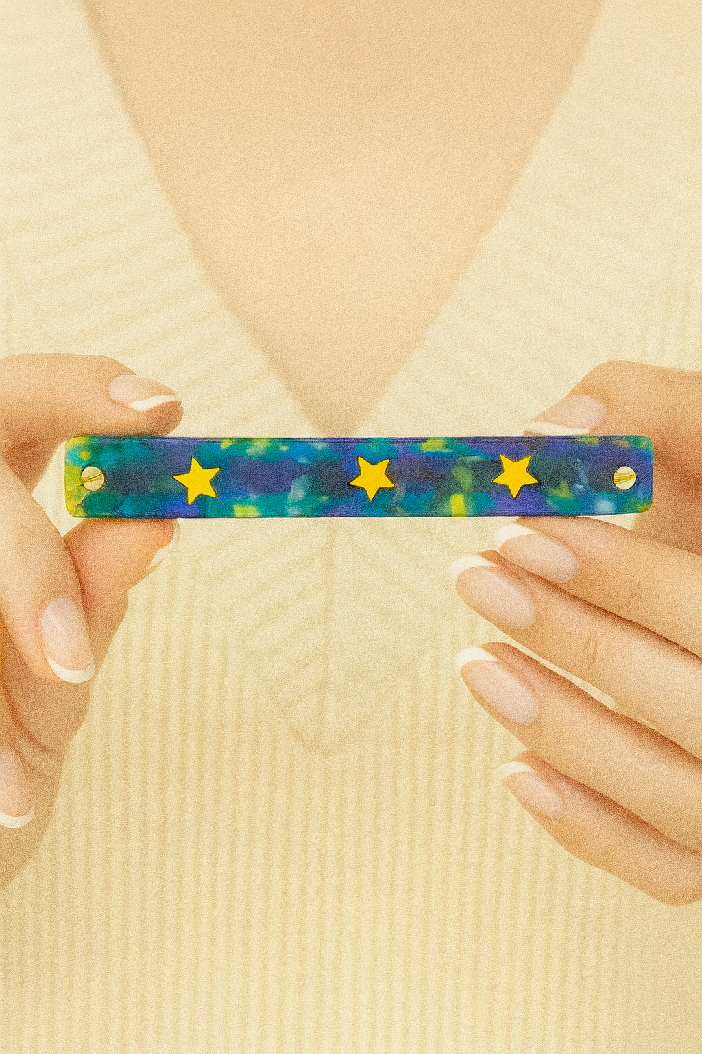 ✔️ Éclat et style unique : l'association de l'écaille turquoise et des étoiles jaunes crée un bijou de cheveux lumineux et ultra-tendance, parfait pour un look moderne et sophistiqué.