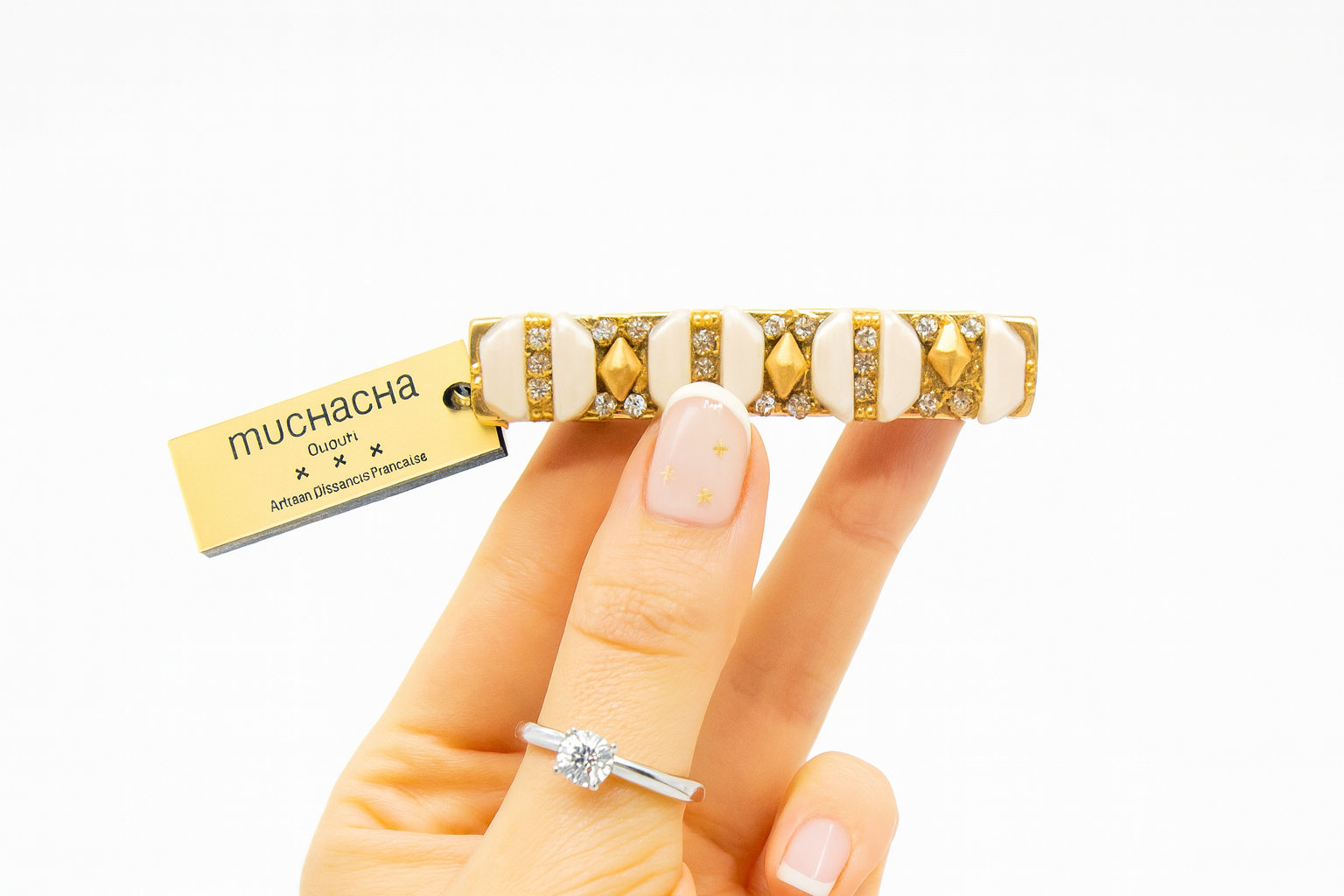 Créatrice passionnée venue de l’univers de la mode, Lilie réinvente la barrette pour en faire un véritable bijou de cheveux haut de gamme. Conçues comme des accessoires uniques, ses barrettes de luxe allient élégance, modernité et féminité. Pensées pour sublimer chaque coiffure, elles transforment la chevelure en un apparat de séduction, faisant de ces bijoux de cheveux un indispensable dans l’univers des accessoires de mode. Découvrez les secrets de fabrication Muchacha.